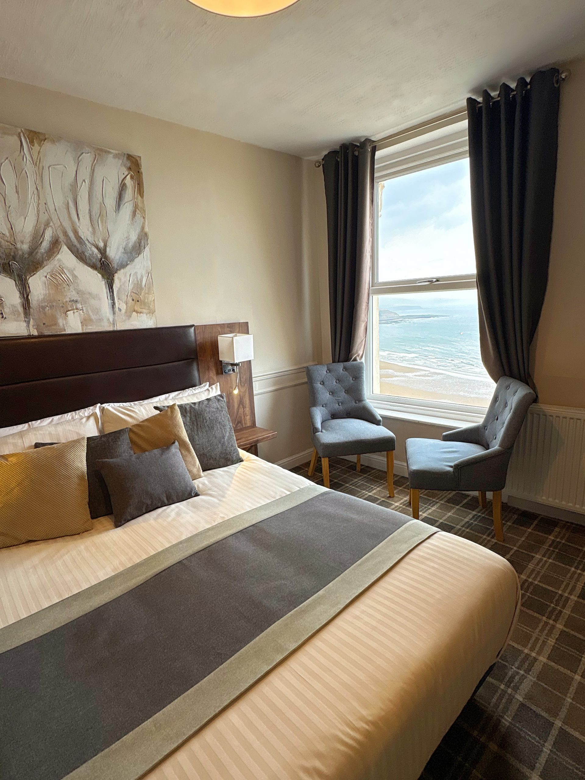 Would you like a sea view hotel room? Check your dates for availability here – but hurry – our sea view rooms overlooking the castle and beach get booked very quickly.